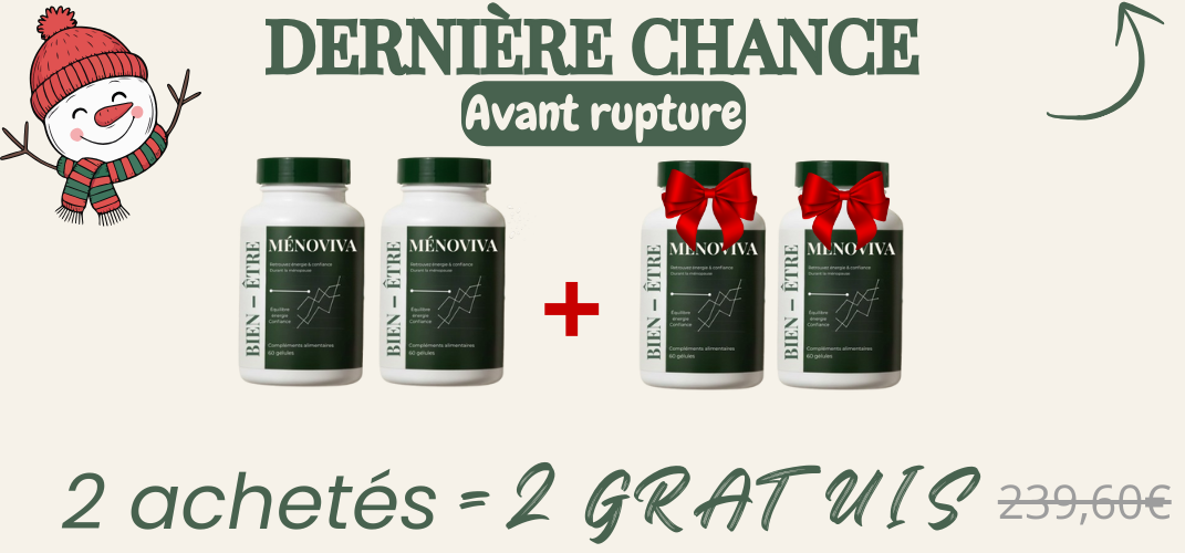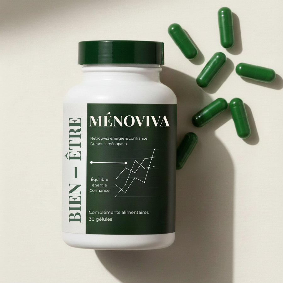 Ménoviva est spécialement conçu pour accompagner les femmes pendant la ménopause et la préménopause. Sa formule ciblée contribue à réduire les bouffées de chaleur, améliorer la qualité du sommeil, stabiliser l’humeur, tout en aidant naturellement à réduire la prise de poids hormonale. Un soutien complet pour des journées plus légères, plus sereines et un corps qui se rééquilibre progressivement.