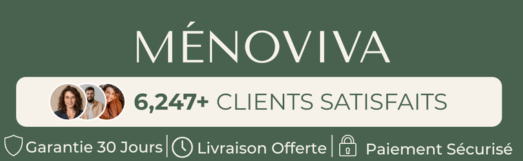 Si vous ne constatez pas d’amélioration ou si le produit ne correspond pas pleinement à vos attentes, vous bénéficiez de notre garantie Satisfait ou remboursé 30 jours. Nous croyons en l’efficacité de Ménoviva — c’est pourquoi vous êtes libre de l’essayer en toute sérénité.