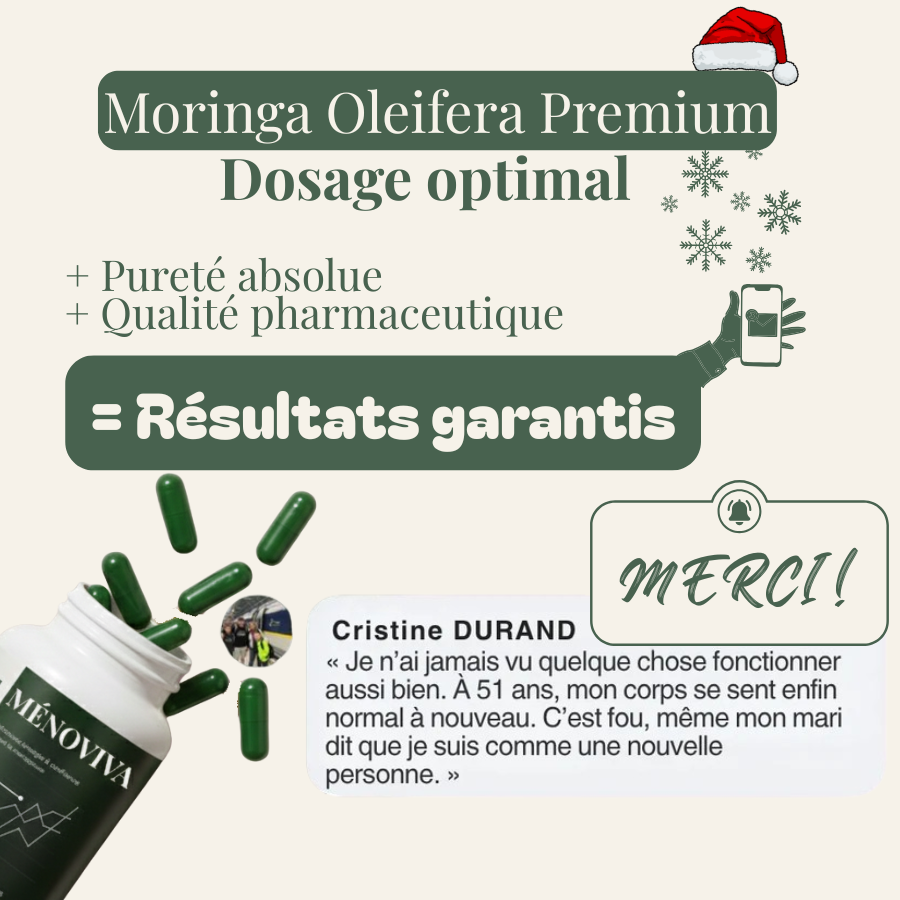 Ménoviva, c’est la promesse simple et rare d’un Moringa au dosage parfait — celui qui apaise vraiment les bouffées de chaleur.